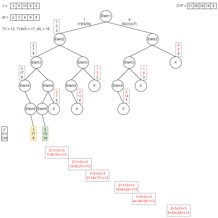 Now let’s consider the first part of backtracking feature, stating “if OV>TVWO or OW>WL, then prune the exploration of this branch, since the constraints are irrevocably broken and cannot recover through adding other coins” (because adding any coin would result in an increase of both OV and OW)…